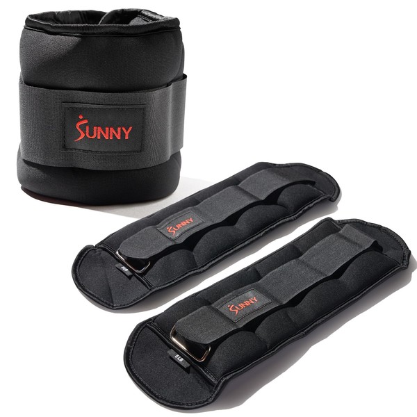 Sunny Health & Fitness 5-Pound Ankle Weights (Pair) - Adjustable, Sweat-Resistant, Secure Strap for Fitness, Walking, Cardio, & Home Workouts - SF-WA01-5