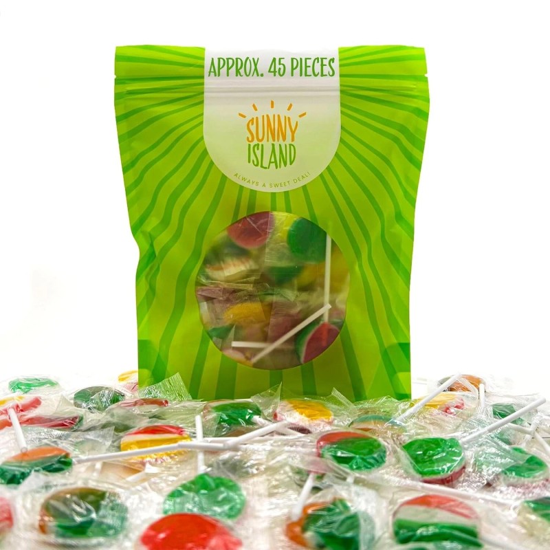 Sunny Island Fruit Lollipops | 1 Pound Bag, 40 Count | Flat Lollipops