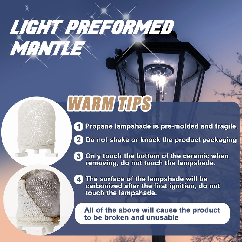 - Convenience is Key: these 12 gas lantern mantles, packed in a sturdy carton to guard against damage. These are easy and convenient to install, but do remember to handle with caution to avoid breakage