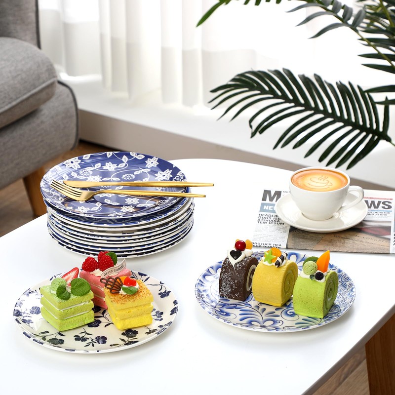 - Quality Material and Design: the melamine tray is meticulously crafted from quality melamine imitation ceramic, offering endurance and reliability; At about 8 inches, the platters are suitably sized to serve a variety of dishes, such as salads, sushi, appetizers, sandwiches, fruit, cookies, cupcakes and so on