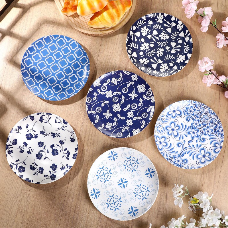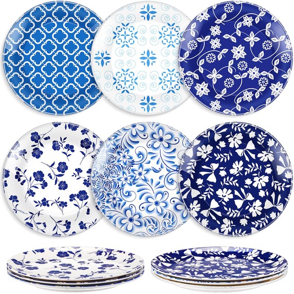 - Elegant Aesthetics and Gift Choice: these melamine plates feature 6 different vintage and beautiful designs that make them an eye catching centerpiece; The shades of blue and white appeal to the nice blend of modern refinement and classical charm, making these platters suited for any occasion or setting; The retro inspired blue designs add a charming touch to the platters, transforming your dining experience into an aesthetic journey, making them an ideal gift to share with your loved ones