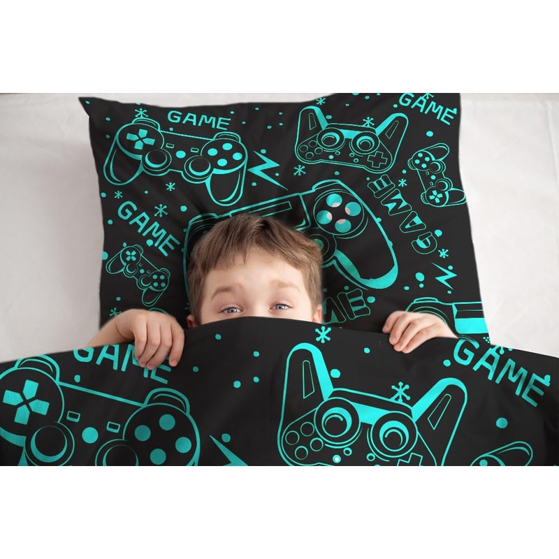 - 【Easy Care】This boys gaming bedding set is Machine washable which can save you more time and energy .Gentle cycle with cold water, tumble dry at low temperature, cool iron if needed, Do not bleach, Do not soak. Since the comforter comes in vacuum-sealed packaging, it is highly recommended to gently tap comforter for increased fluffiness before putting it on your bed.