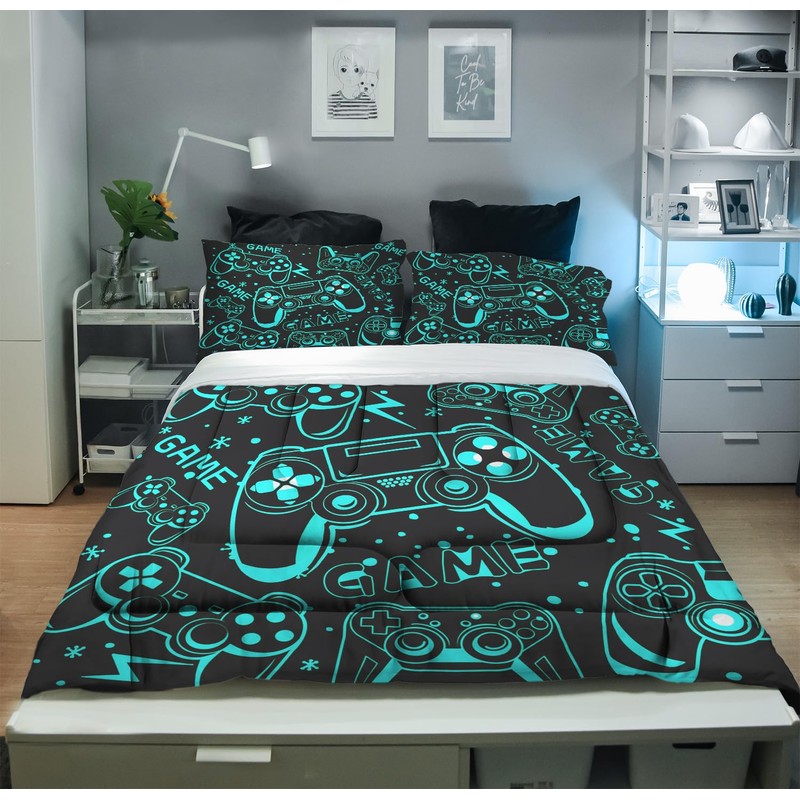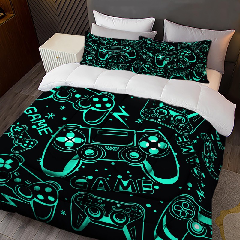 - 【Bedroom Decor and Prefect Gift】This gamer Comforter Set beautiful and practical Soft and breathable, give you the Perfect Sleep experience , We use the latest 3D printing technology ,The comforter with clear patterns and bright colors , without fadingit ,give your bedroom a stylish decoration, suitable for any room -bedroom, guest room, children's room, RV, vacation room and dormitory . Perfect for idea Gift to your loved Children, Kids, Girls, Teens.