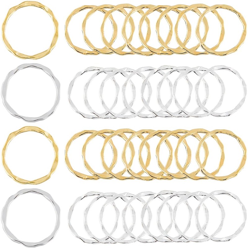 SUNNYCLUE 1 Box 100Pcs Bezel Charms Alloy Linking Rings Circle Frames Hollow Textured Charms Golden Silver Links Charm Connectors Open Back Bezels Round Pendant Frames for Jewellery Making Charms