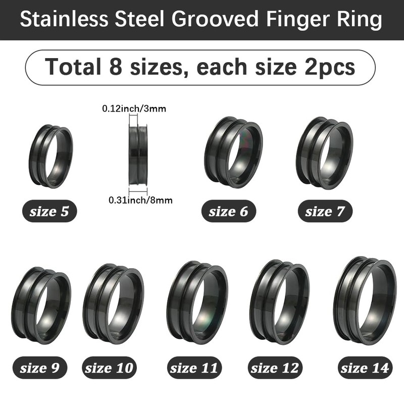 - 8 Sizes Blank Rings Bands: Package includes grooved rings in 8 sizes, 2pcs each size, ideal for custom jewelry, couples'sets, or group gifting, ensure a perfect fit for every project