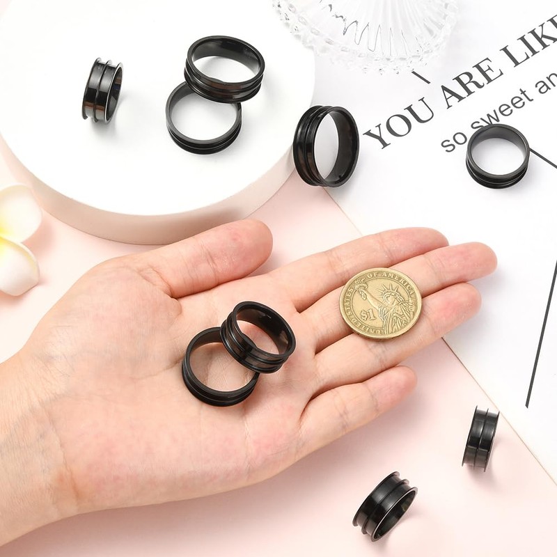 SUNNYCLUE 1 Box 16Pcs 8 Sizes Wedding Band Blanks Grooved Ring Stainless Steel Black Round Blank Empty Core Finger Ring Settings for Engraving Resin Crafts Inlay Jewelry Making Inner Diameter 16~23mm