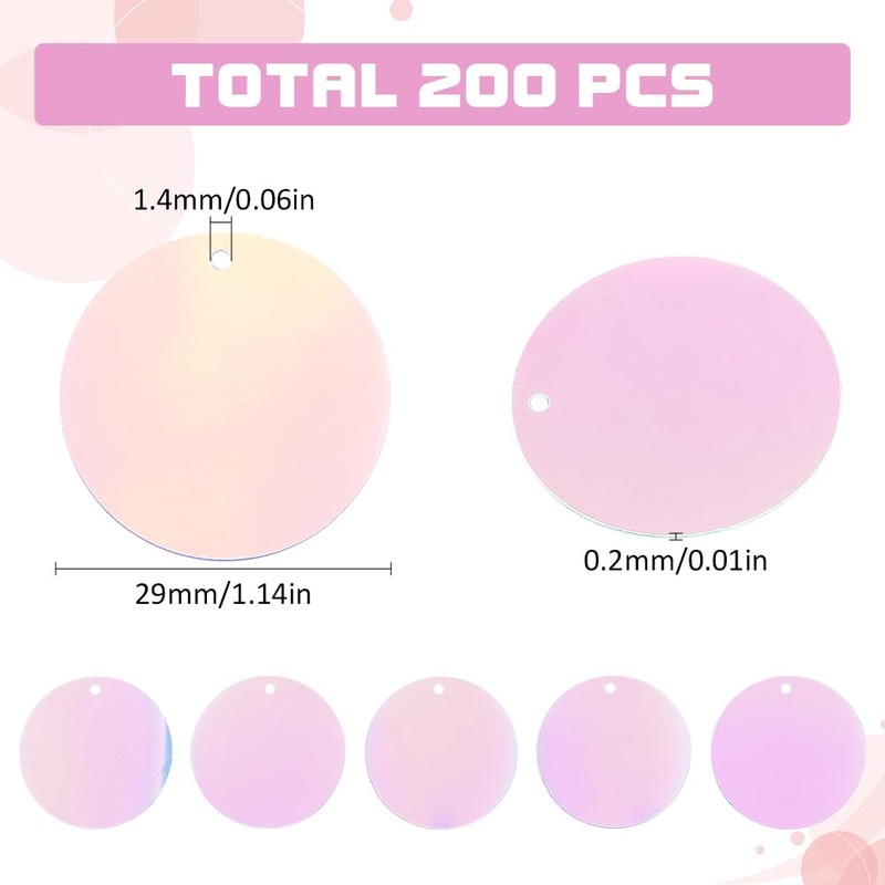- Size and Content: 200 Pcs paillettes sequin: about 30 mm(1.18 inch) in diameter, 0.2 mm(0.01 inch) thick, hole: 1.4 mm. Come with 1 pc plastic box to help you organise it