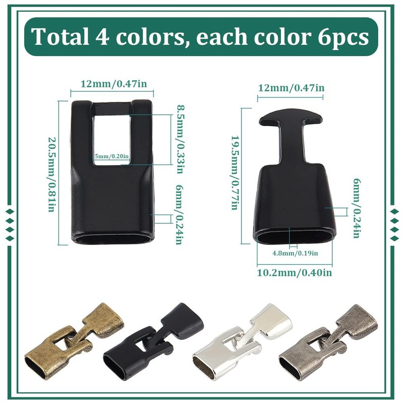 - 24Pcs 4 Colors Alloy Bracelet Buckle Clasps: There are 4 colors of alloy bracelet buckle clasps in total, 6pcs for each color, 24pcs in total. You can match different colors of alloy bracelet buckle clasps according to the style of bracelet you want.