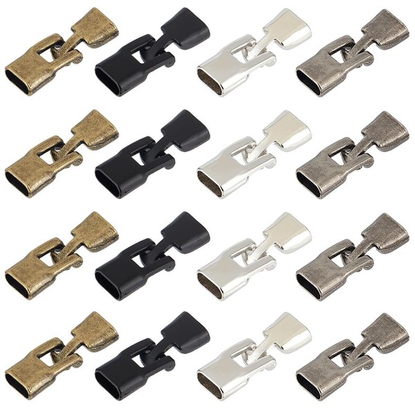 SUNNYCLUE 1 BOX 24pcs Alloy Bracelet Flat Buckle Clasps Leather Bracelet Clasps and Closures Metal Black Silver Bronze Necklace Extension Fastener Clasp for jewellery Making Bracelet Necklaces Diy Cra