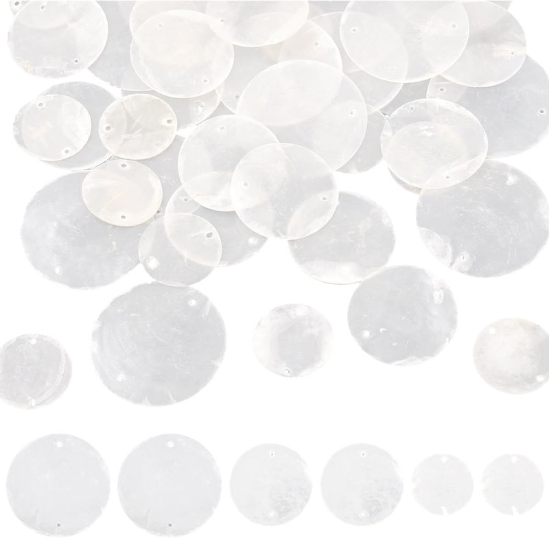 SUNNYCLUE 1 Box 48 Stück 3 Größen Muschel Verbindungsanhänger Capiz Muschel Anhänger Natürlicher Sommer Ozean Strand Hawaii Runde Scheibe Münze Perlmutt Verbindungsstücke Für Die Schmuckherstellung An