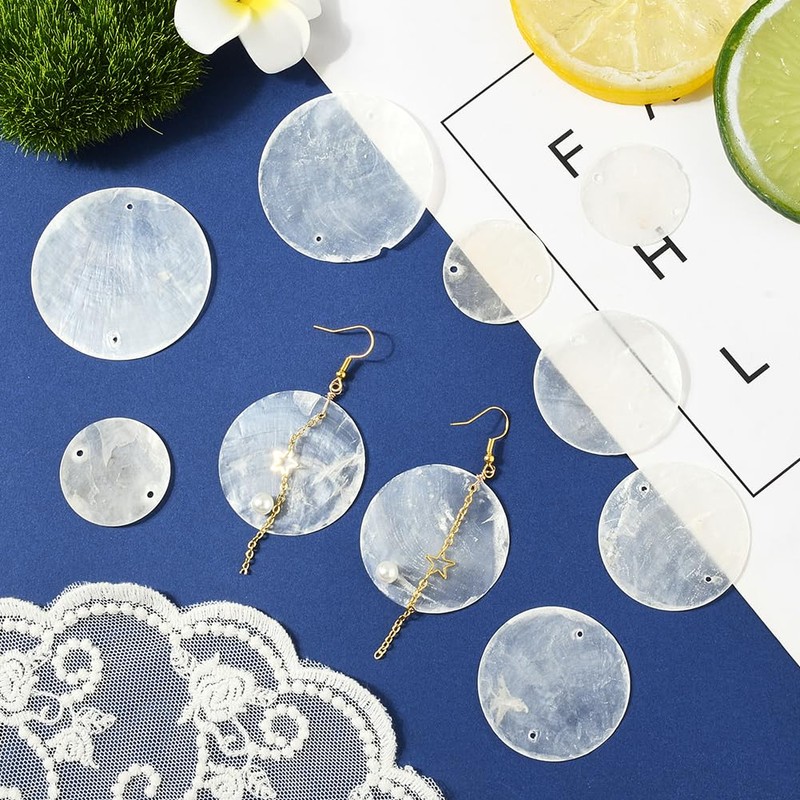 - 48 Stück Capiz-Muschel-Anhänger:Das Paket enthält insgesamt 48 Stück Capiz-Muschel-Anhänger, kann Ihren Bedarf an der Herstellung von Sommerschmuck erfüllen, Bitte lassen Sie Ihrer Fantasie und Ihren praktischen Fähigkeiten freien Lauf, um wunderschönen DIY-Schmuck herzustellen