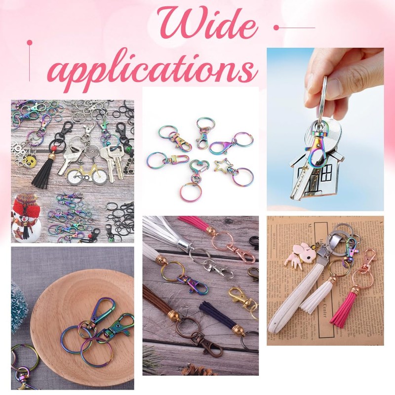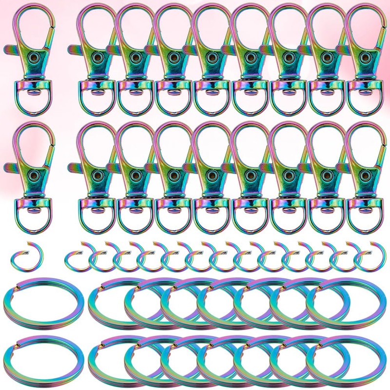 Rainbow Swivel Clasp Hooks Kit: The surface of this swivel clasp hooks kit is fashionable and unique dazzling colour, fashionable and eye-catching, with quality stainless steel jump ring and key ring, you can reliably store all kinds of keys, hanging access card, USB flash drive, etc., convenient for daily carry