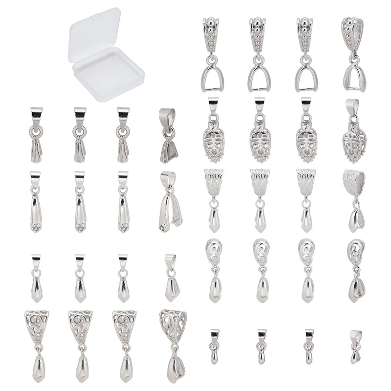 SUNNYCLUE 1 Box 9 Styles Pinch bails Brass Pendant Clasps Pinch Clasp Jewelry Connector Charm Findings for DIY Earring Bracelet Necklace Jewelry Making Supplies Craft, Silver