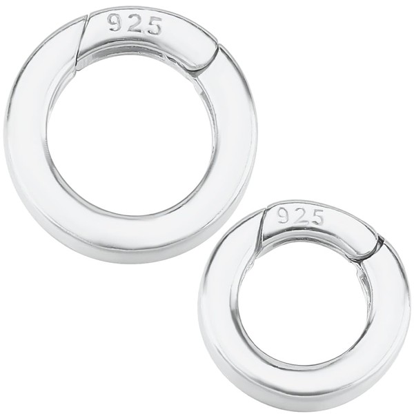 SUNNYCLUE 1 Box of 2 Spring Gate Rings Round Spring Clasp 925 Sterling Silver Bracelet Necklace Shortener Small Clamp Clasps Lobster Hook O Rings for Jewellery Making DIY Crafts and Gifts