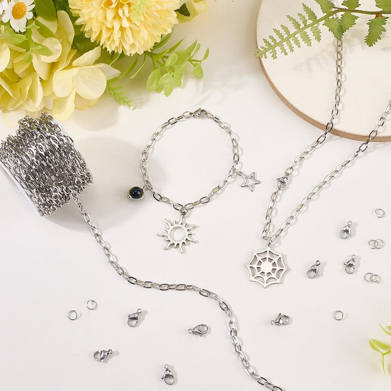 - 4mm Paperclip Chain Kit: This paperclip chain set contains 5m of stainless steel chain, 30pcs jump rings and 10pcs lobster clasps, take the right chain and cut it to connect through the jump rings and lobster clasps, perfect for making necklaces and bracelets