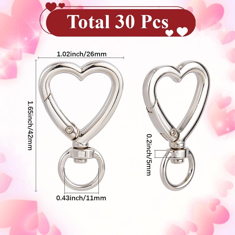 - Size and Content: Heart claw clasp: about 2.6cm(1.02 inch) wide, 4.2cm(1.65 inch) long, hole: 11mm, 30pcs