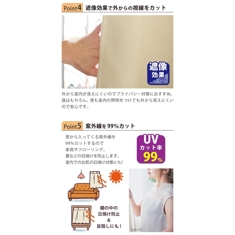 Sunnyday Fabric Tuck Cafe Curtain, Elion, Approx. Width 23.6 inches (60 cm) x Length 43.3 inches (110 cm), Beige, Solid Color, 1 Panel, Thermal Insulation, Grade 2 Blackout