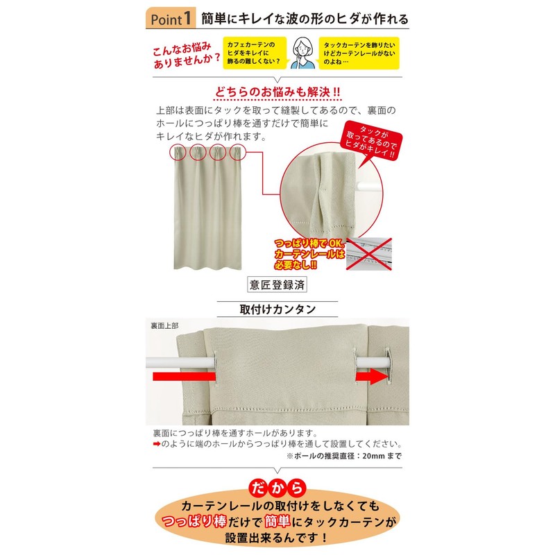- [Tack sewing specifications] New suggestion for small windows and thin windows. No curtain rod needed! This is an original tuck curtain that creates a beautiful wave shaped fold just by inserting it through a rod. (Sewing specifications have been registered)