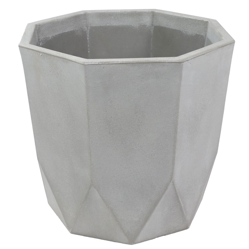 Sunnydaze Modern Faceted 14.75" Polyresin Geometric Planter - Flower Pot for Indoor or Outdoor Use - Light Gray
