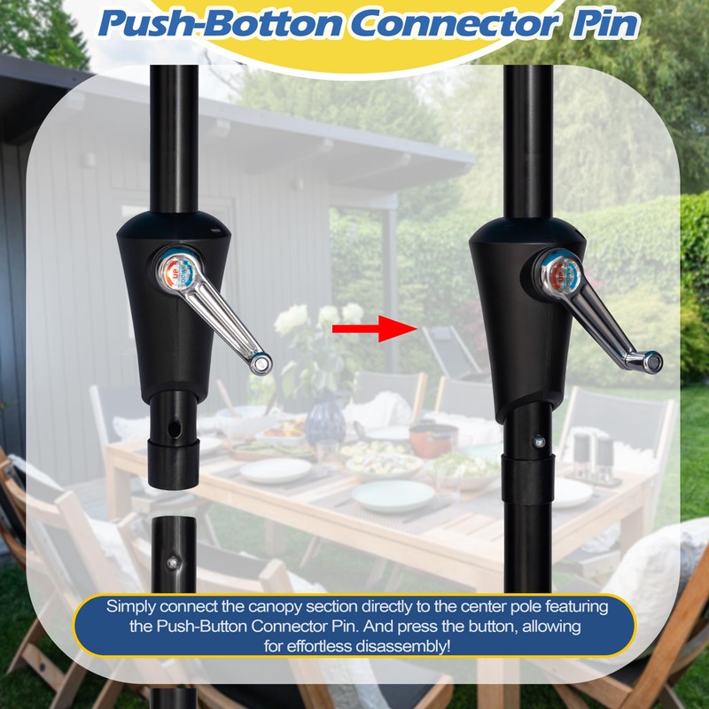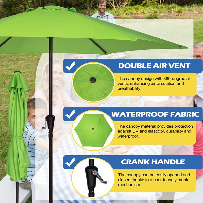 - 【Convenient Crank Operation system】The 9-foot patio umbrella features a crank lift mechanism that simplifies its operation. With just a few rotations, users can effortlessly raise the canopy to the desired height or lower it for closure. This user-friendly system makes open/close the umbrella quick and easy.
