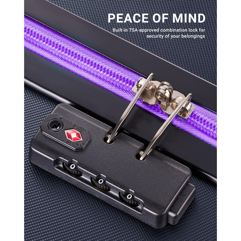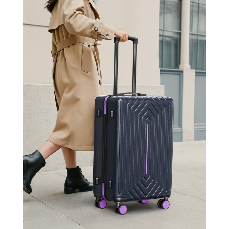 - Bright Color:This modern design looks great in any situation. The base of the case is dark blue, while the center stripes, zipper seams and wheels are light blue, purple, rose and yellow, respectively.