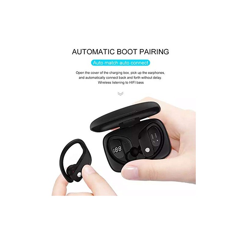 • 【Multiple Smart LED Digital Display】With the smart LED digital power display of this wireless earbuds, you could check the remaining battery level and charging process of both earbuds and charging case at a glace even without opening the case lid. The percentage in the middle indicates the battery level of charging case, and the battery icons on both sides indicate the remaining battery of the left and right earbud respectively. Therefor you'd never worry about a sudden low battery alert.