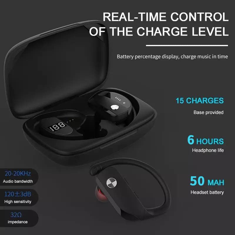 SUNOL T16 Wireless Earbuds 80hrs Playtime Wireless Charging Case Digital Display,Wireless Earbuds Bluetooth Headphones, LED Display Over-Ear Buds , Earhooks Built-in Mic Headset for sport