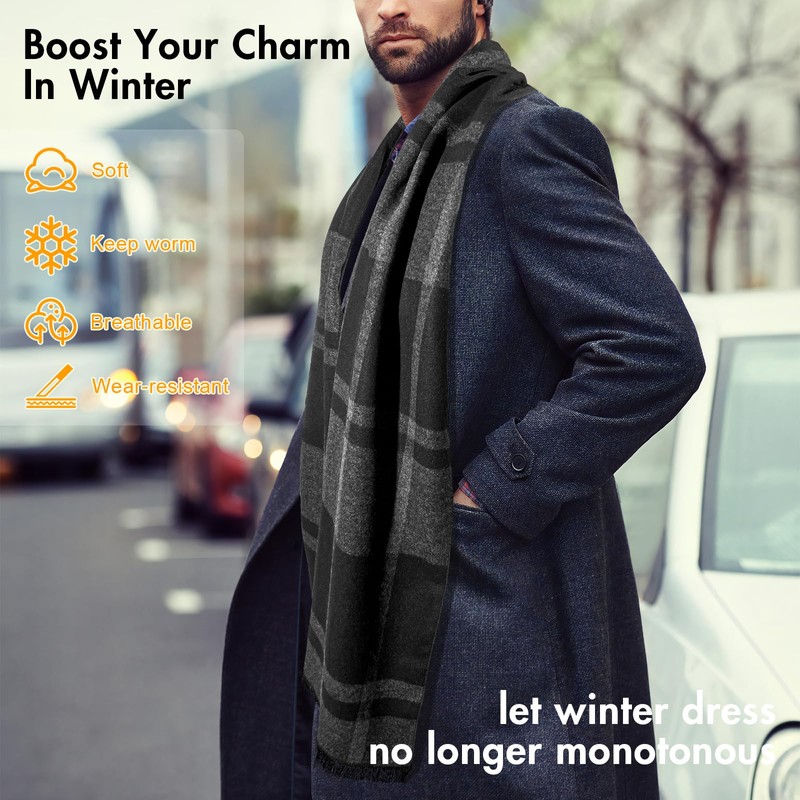 - Winter Warm Scarf: 2 pack mens scarf with 2 styles, black and grey combo colors, variety of classic designs can enhance any outfit, coat, windbreaker, suit or sweater