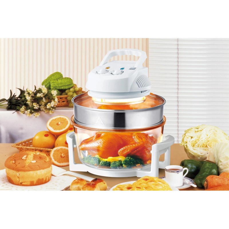 Multi-purpose convection oven can be used to bake, grill, roast or steam – all in less time. Preserves nutrients and keeps meats tender. Circulates fan-forced heated air over surfaces evenly and maintains even temperature. High temperature safety glass bowl.