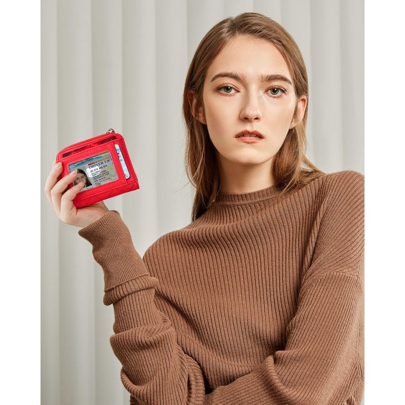 • COMPACT BUT SPACIOUS This small ladies wallet offers 6 extended card slots, 2 clear ID windows, 1 bill compartment as well as a 270° all around zipper coin pocket for easy access. The front window allows quick ID display - no more annoying searching! All in a slim, space-saving design.