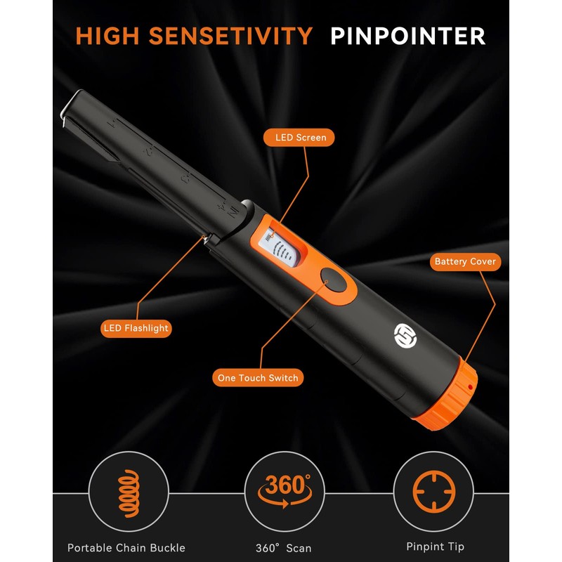SUNPOW Metal Detector Pinpointer for Adults & Kids, Fully Waterproof, 360°Detection Handheld Pin Pointer Wand with LCD Screen, 3 Modes (Buzzer, Vibration,Sound) for Treasure Hunting- OTMD08