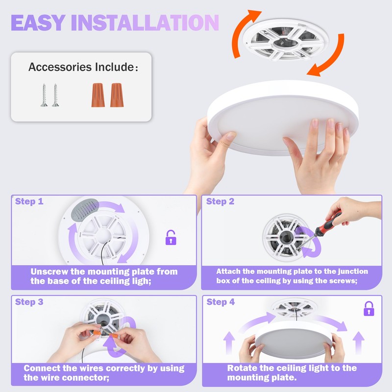 - Easy Installation & Updated Mounting Plate: 2-pack 9-inch small flat ceiling light installation is simple and convenient. No longer confused by those tedious installation steps. It is designed with a rotating mounting plate on the ceiling light base that allows you to complete the installation simply and quickly. The updated mounting screw diameter ranges from 1.96 to 4.33 inches.