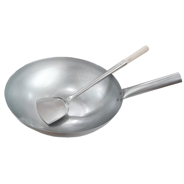- 14" Hong Kong (Cantonese) style round bottom wok with a wok spatula (shovel).