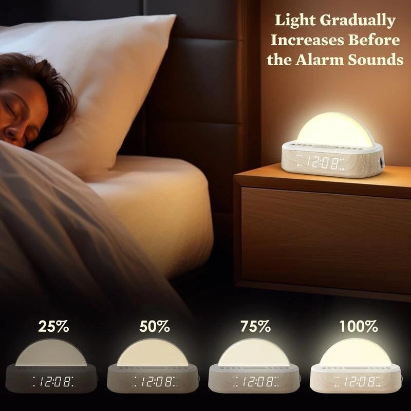 Sunrise Alarm Clock Digital W/ Tranquil Sleep Sounds Multicolor Light Timer New