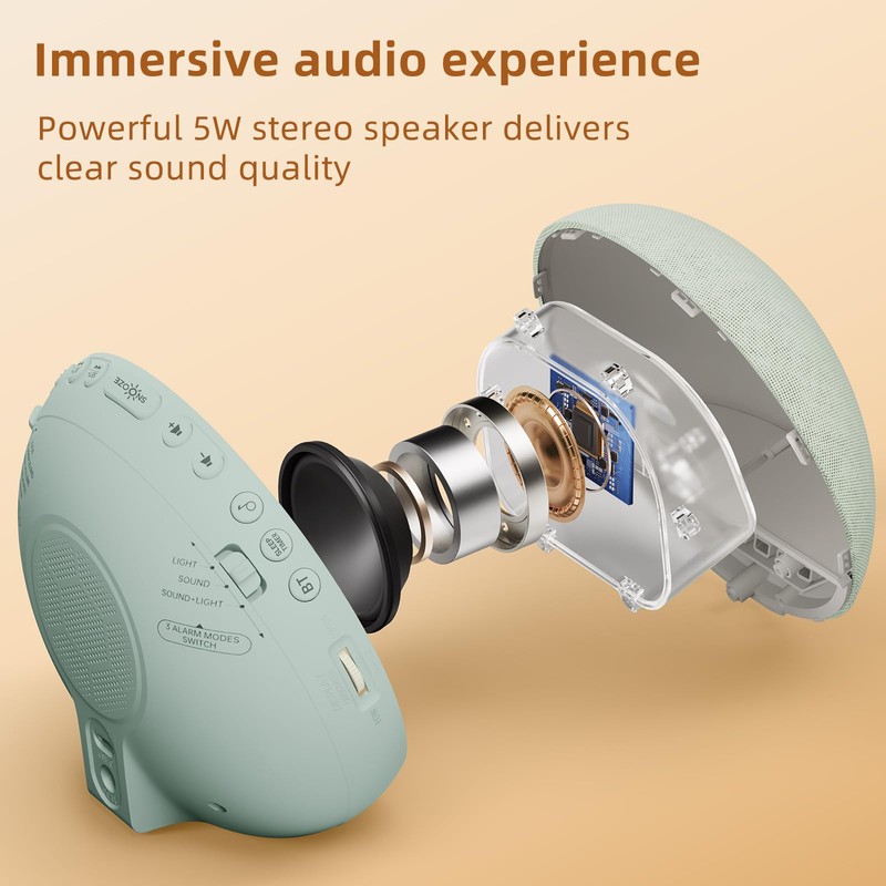 The Bluetooth 5.3 speaker delivers fast, stable connectivity for wireless audio streaming up to 10 meters. You can enjoy music or audiobooks with a simple Bluetooth pair. 7 Optional Wake Up Sounds