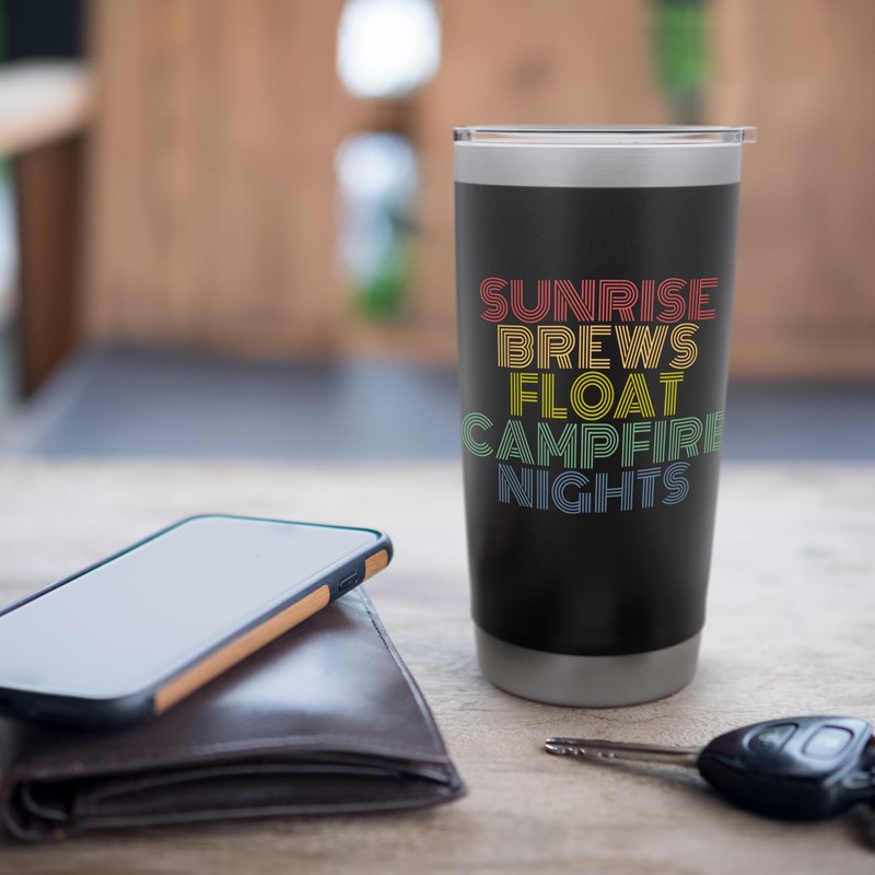 Sunrise Brews Float Campfire Nights Lake Life Vibes Retro Stainless Steel Insulated Tumbler