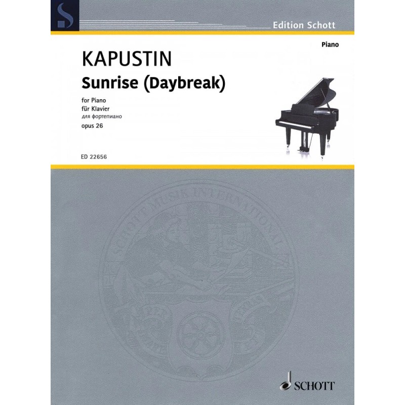 Sunrise was published as an orchestral piece in 1976 already, but it was not until 1982 that Kapustin arranged this version for solo piano. The piece is written in a swinging jazz style.