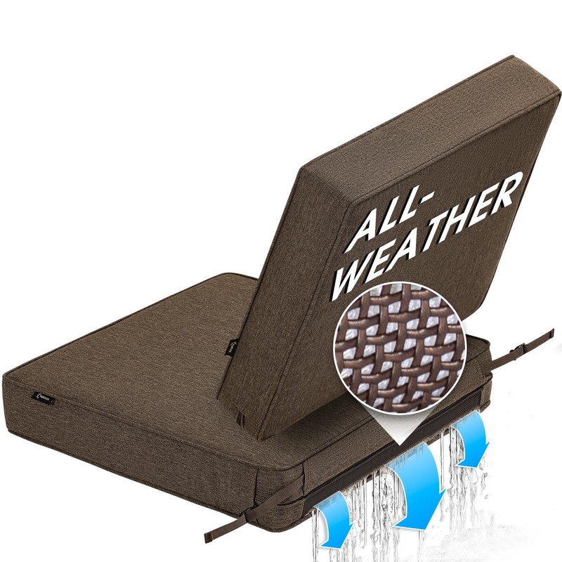 SUNROX All-Weather DryFast Foam Outdoor Patio Furniture Cushions, FadeShield Water Resistant Deep Seat Cushion with DryMesh Drainage, Durable Low Maintenance Couch Cushion, 24"x24"x4" Heather Chestnut