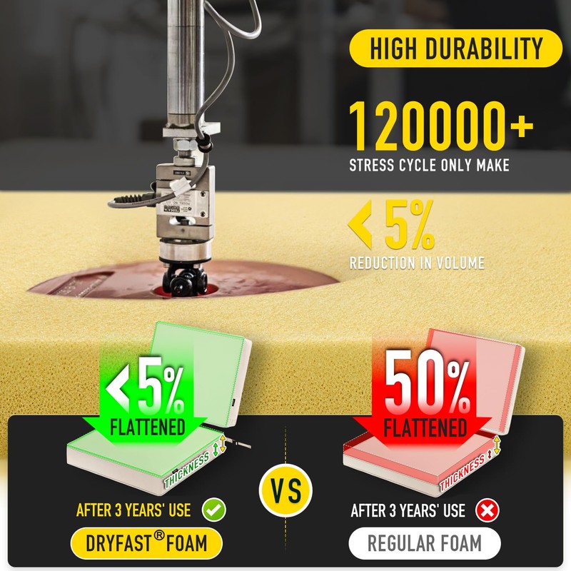 - 【Water Drainage & Dry Fast】 DryFast Foam is produced by a sophisticated process called Hydro-Blast Reticulation, having a porous open cell structure (reticulated foam). Unlike non-reticulated normal foam, reticulated foam has large, open pores which permit maximum water drainage and air circulation, allowing quick usage after being wet or even saturated. Simply a seat cushion that you can leave outdoors - rain, snow, hail or shine with the minimum of maintenance.