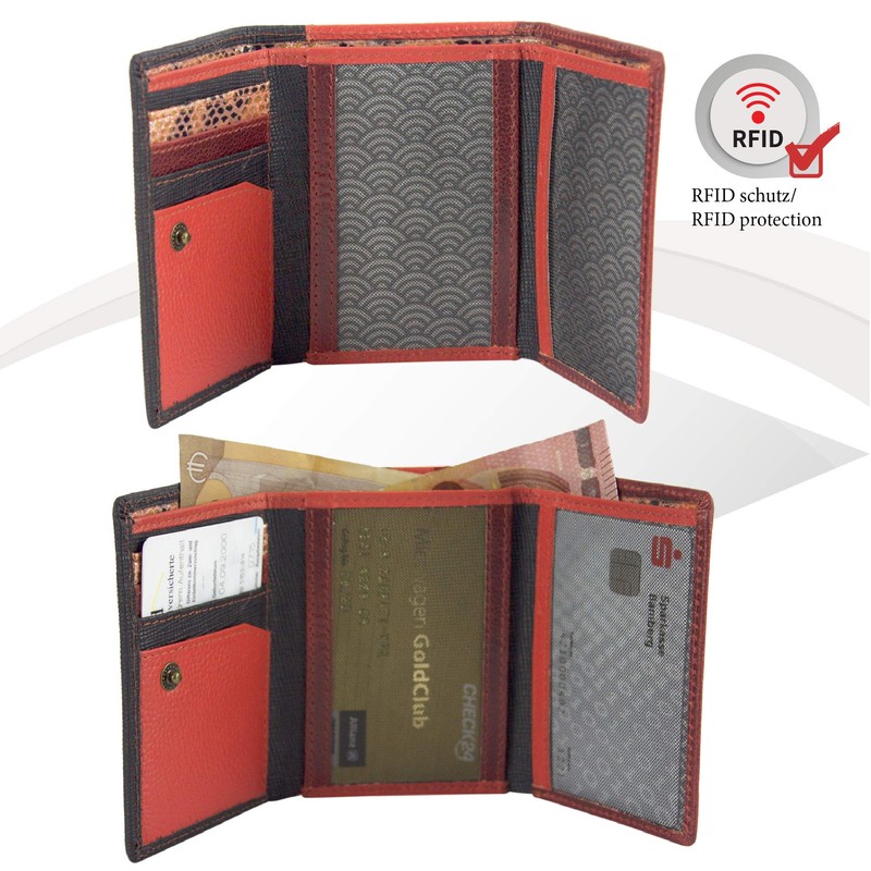 Sunsa Women's Purse Made of Soft Leather with RFID Protection, Women's Purse, Colourful Wallet, Small Wallet with Many Compartments, Leather Wallet as Women Gifts, red black, Classic