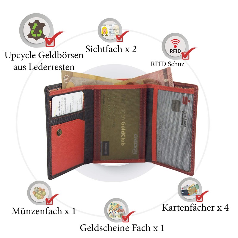 - Material: 100% soft leather wallet. The leather is very robust and durable. This is where upcycling wallets with a diverse, unique individual design are created