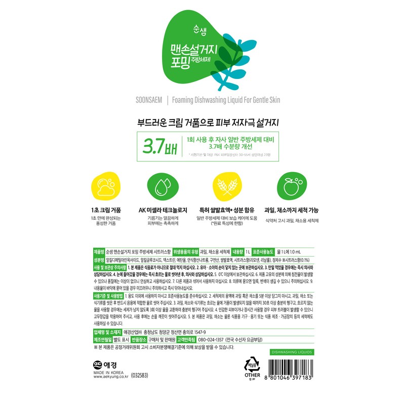 Sunsam [Photo Review 2,000P] Sunsem Bare Hand Dish Refill Citrus Scent 1L x 3 / 순샘 [포토리뷰 2,000P] 순샘 맨손설거지 리필 시트러스향 1L x 3개