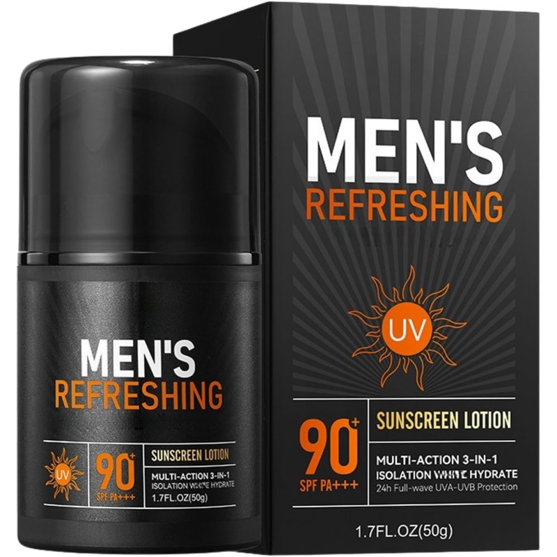 Sunscreen for Men SPF 90+, Mens Moisturiser Face with UVA/UVB Protection, Waterproof & Sweat Resistant Sun Lotion