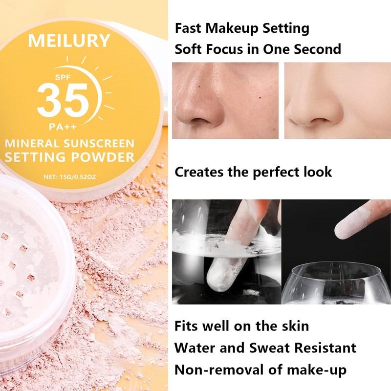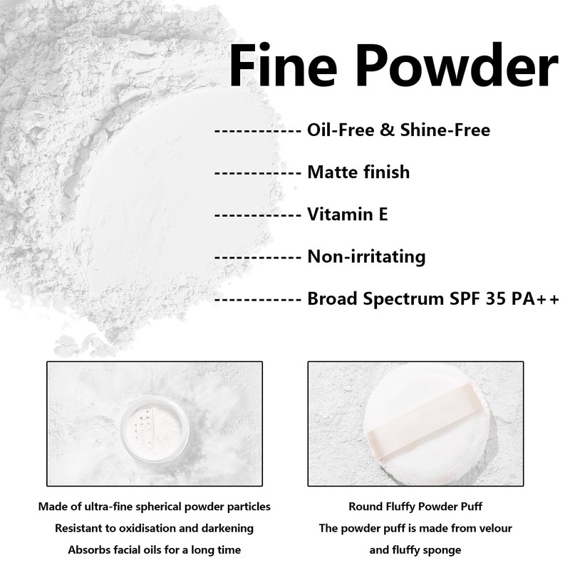 Sunscreen Setting Powder SPF 35, Translucent Face Loose Powder, Oil Control M...