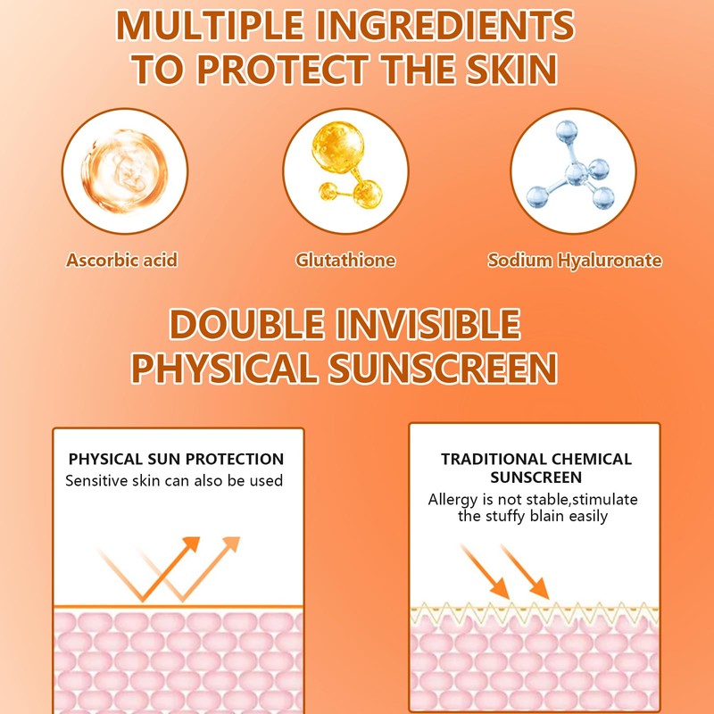The vitamin c sunscreen waterproof formula provides powerful and long-lasting protection, making it ideal for pool days, beach outings and any water activity. Sun cream face This long-lasting formula makes it perfect for those involved in outdoor activities and water sports. With its lightweight design, you can easily carry it with you wherever you go, ensuring all-day skin protection.