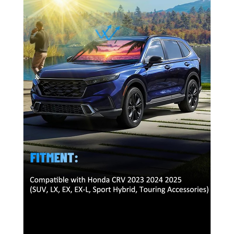Sunset Beach Car Windshield Sun Shade Compatible with Honda Civic 2016 2017 2018 2019 2021, Foldable Reflective Window Sunshade for UV Protection & Heat Reduction