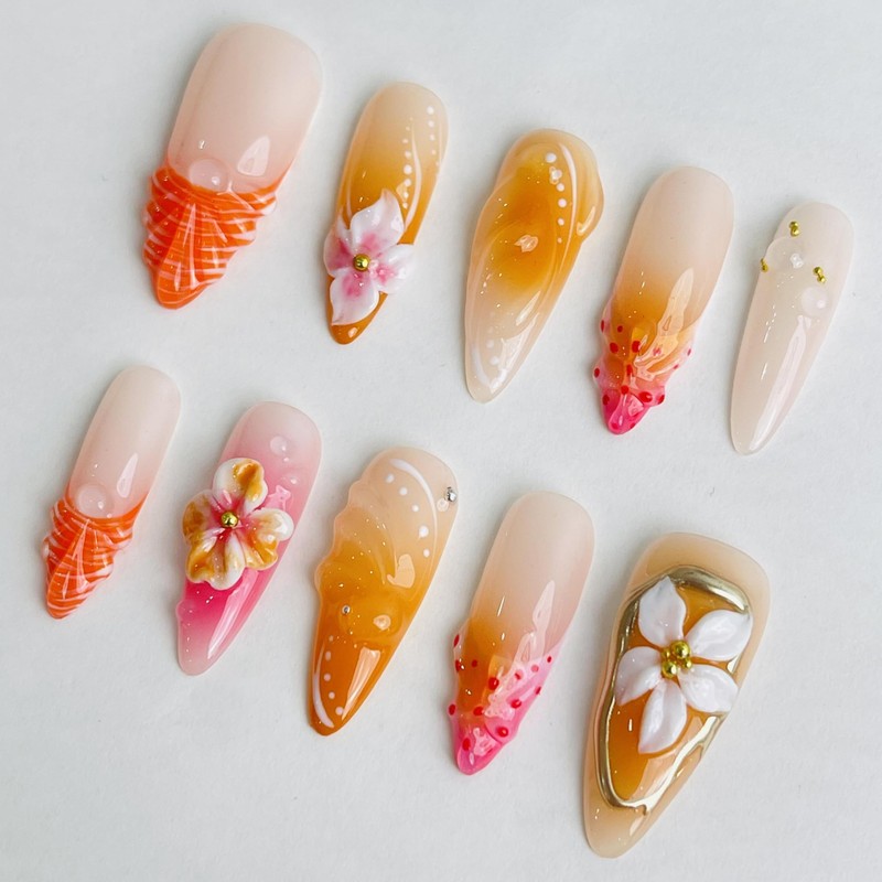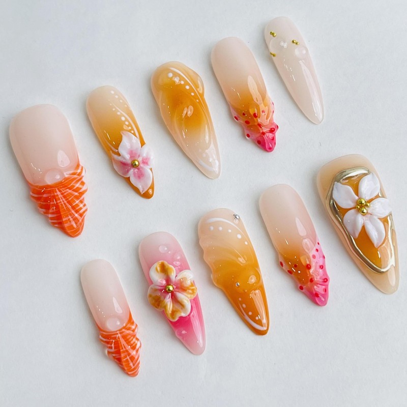 - Handmade 3D Press-On Nails That Feel Like Art: These aren’t your typical press-ons. Every nail is hand-sculpted with real 3D flowers and butterflies, finished with a glossy UV coat to keep them looking fresh and fabulous. It’s like wearing a tiny work of art on your fingertips.