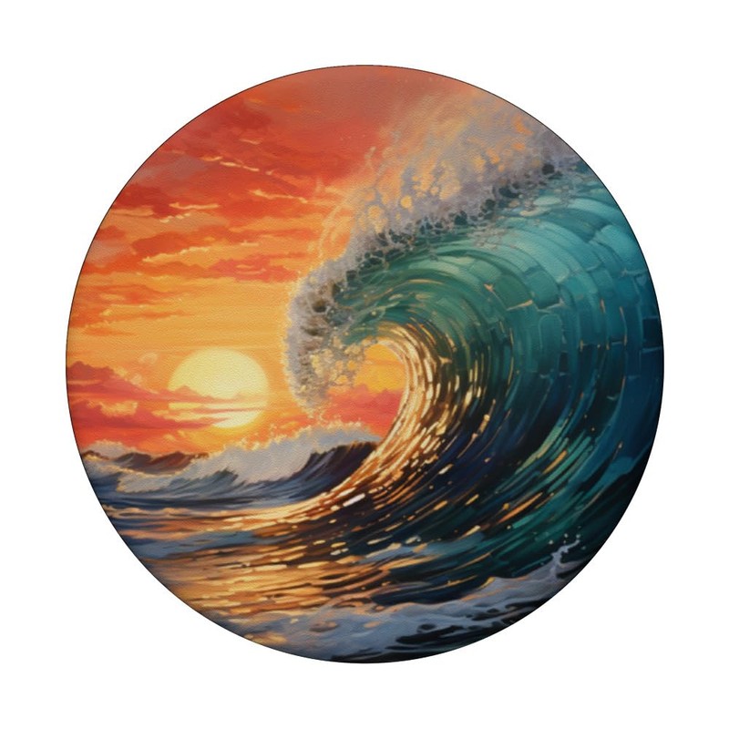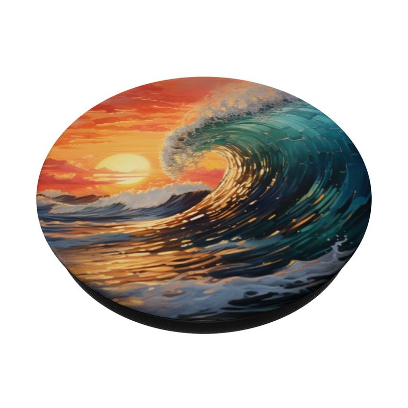 Sunset Ocean Wave Painting for Beach Lover and Surfer PopSockets Standard PopGrip