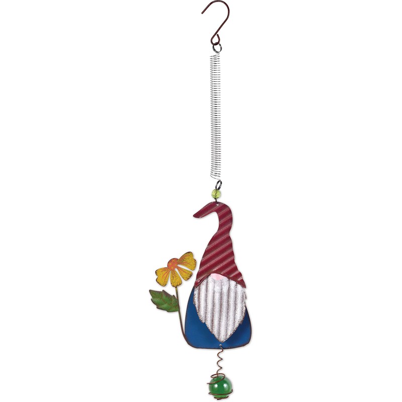 - METAL GNOME BOUNCY GARDEN DÉCOR with hooks to hang in the garden on the porch or any outdoor space