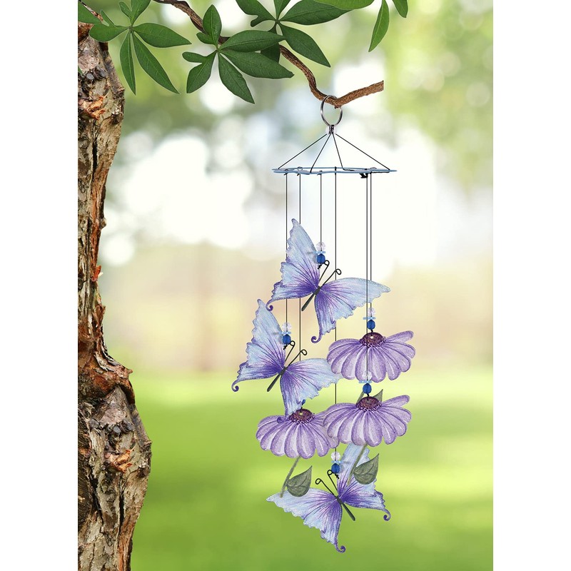 - Chima de mariposa hecha a mano: mariposas y flores de metal galvanizado; incluye anillo de metal fácil de colgar y plataforma de suspensión en forma de flor
